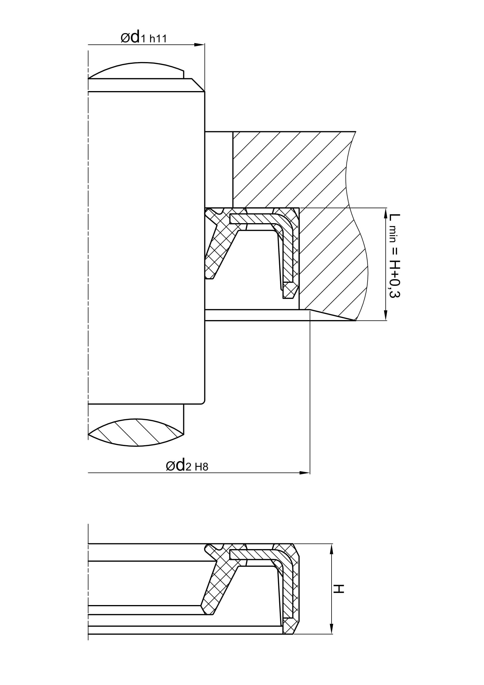 WASO – gufero s výztuží pro rotační nebo otočné hřídele s ochranným jazýčkem. Elastomer na vnějším plášti zajišťuje dobré statické, těsnící a tepelně roztažné síly.