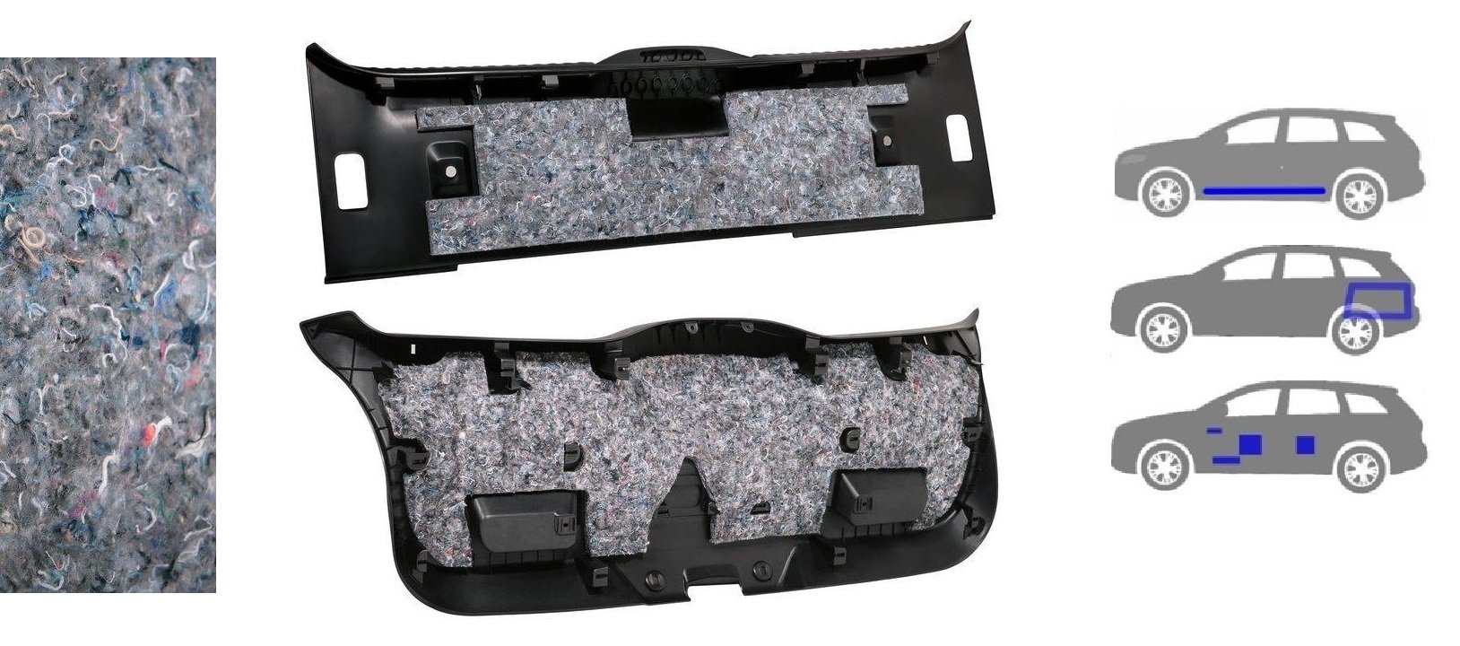 Hlavní použítí Netkané textilie je zejména jako zvuková izolace v automobilovém průmyslu jako odhlučnění motorové části do kabiny ( palubní desky apod.) . Dále pohlcuje zvuk do kabiny z okolích zvukových vlivů .Netkaná textilie se také používá při výstavbě silnic a dálnic, rekonstrukcích, v kolejištích, v tunelech apod .