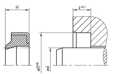Stěrač je instalován v polootevřené drážce (axiálně) . Instalační prostor musí být navržen s menším zkosením .