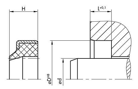 Stěrač je instalován v polootevřené drážce (axiálně) . Instalační prostor musí být navržen s menším zkosením .