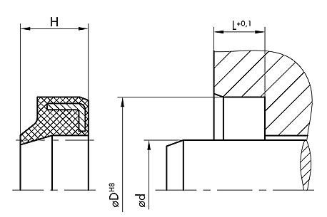 Stěrač je instalován v polootevřené drážce (axiálně) . Instalační prostor musí být navržen s menším zkosením .