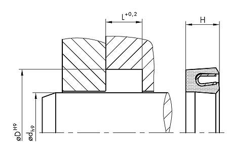 asymetrický u-kroužek s vnitřním hlavním těsnicím břitem. Další označení: S19, MA 43