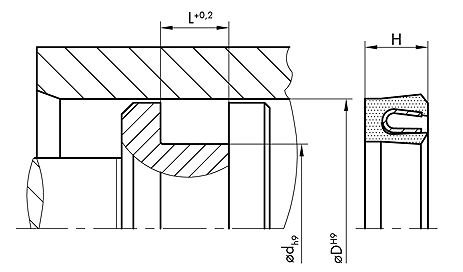 Jednočinné tesnění PTFE ve formě s vnitřním u- kroužkem. Ocelová V-pružina aktivuje těsnící břit natrvalo, takže i v beztlakém stavu je tesnící výkonost zaručena.