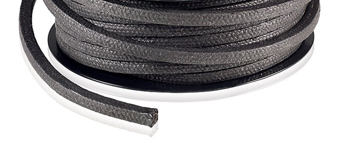 Diagonálně pletená šňůra z vysoce kvalitního čistého uhlíkového vlákna , napuštěná grafitem a protikorozním prostředkem.