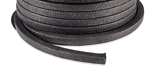 Diagonálně pletená šňůra z čistého grafitového vlákna s minimální čistotou 90%, upraveného protikorozním prostředkem a čistou grafitovou substancí.