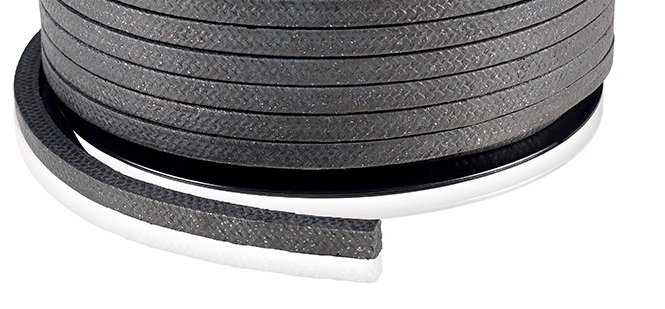 Diagonálně pletená šňůra z Preox vlákna, napuštěná vnitřně čistou grafitovou substancí a protikorozním prostředkem.