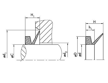 Těsnění proti prachu, špíně, maziv, olejů atd. Funguje dobře s kombinací hřídelových ucpávek . Dobrý dynamický těsnící účinek .