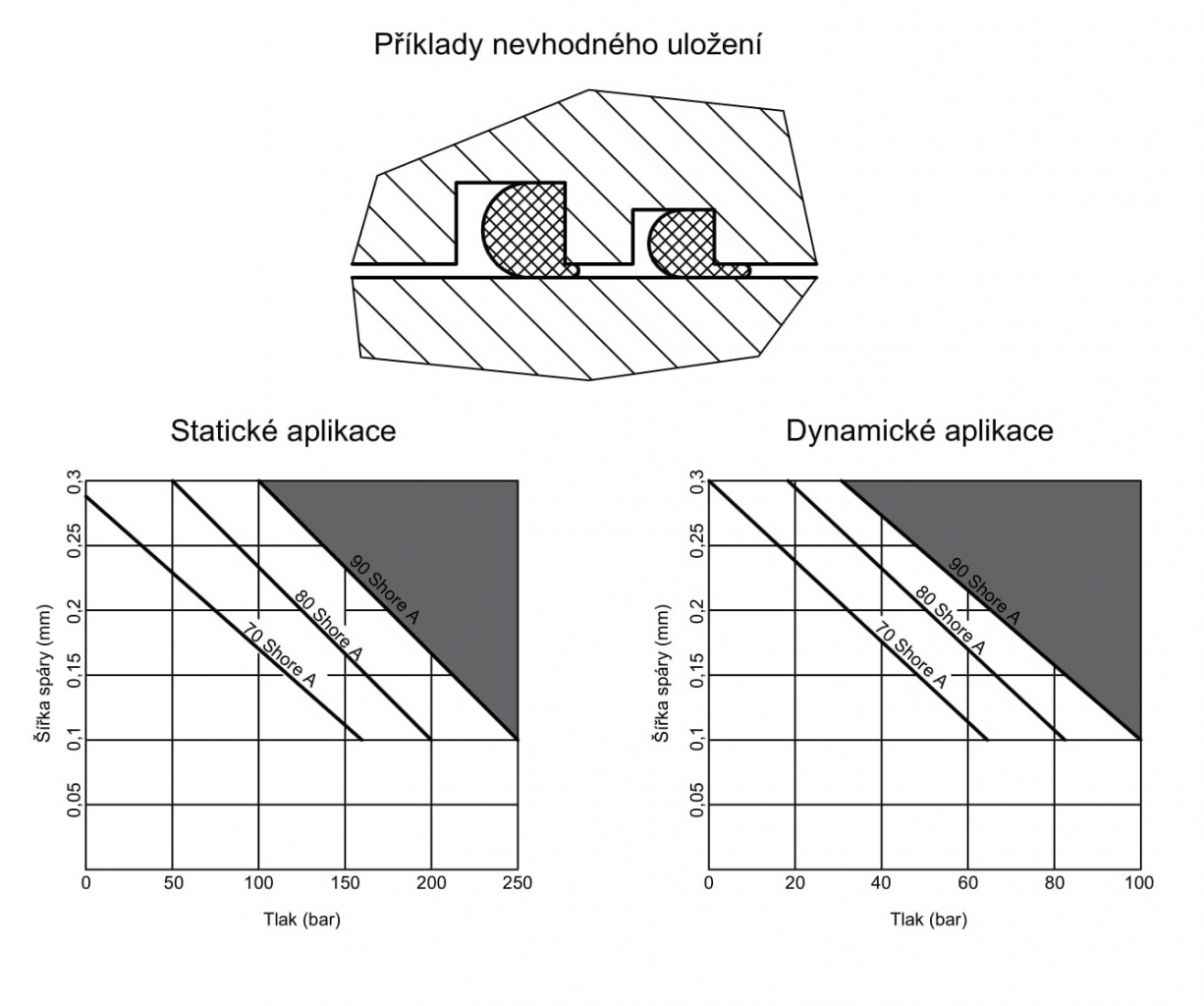 NBR- Dobrá chemická odolnost proti minerálním olejům a tukům, hydraulické oleje H, HL, HLP, nehořlavé hydraulické tlakové kapaliny HFA, HFB, HFC do cca. +50°C a voda do max. +80°C.
