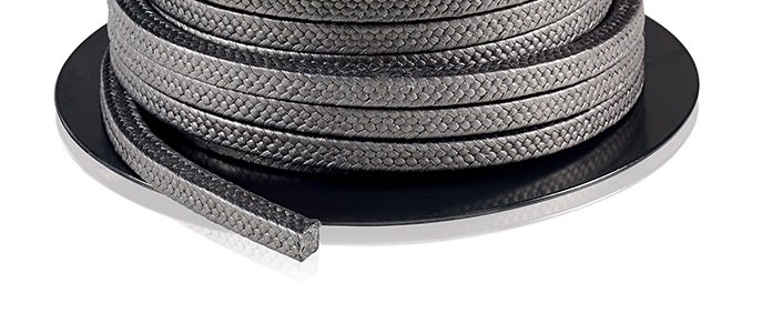 Diagonálně pletená šňůra ze 100% čistého gPTFE-vlákna. (PTFE s přidaným grafitem)