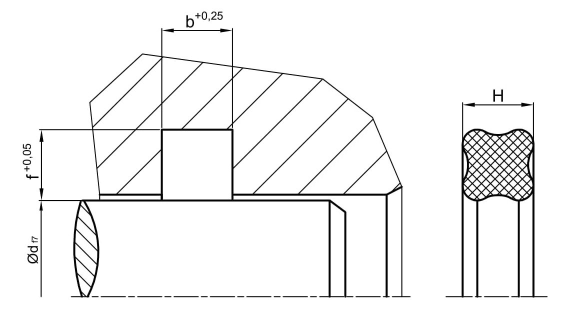 X-kroužky jsou dvojčinné tesnění se 4 tesnicími břity s téměr čtvercovým průřezem . Za provozních podmínek, tlak média posiluje funkci těsnění .